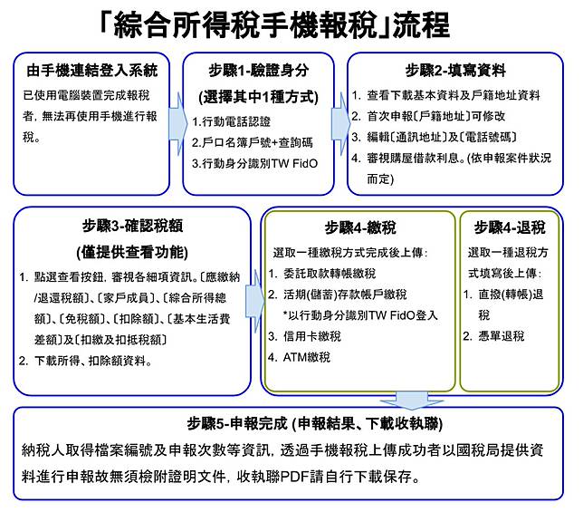 May 20, 2021 · 手機報稅:【手機報稅】如何用行動電話申報綜合所得稅? 退稅日期:本國人分3批次退稅,外僑分3批次退稅,詳細的日期參考下方表格。 退稅詳細內容:所得稅退稅日期 是否申報成功:個人所得稅查詢、結果 退稅. Apr 20, 2021 · 而在財政部稅制優化方案上路後,民眾報稅時可採股利分開或合併申報二擇一的課稅方式,選擇合併申報的民眾,股利所得的8.5%可計入抵減稅額,上限8萬元。若可抵減稅額大於應納稅額,就可申請退稅。